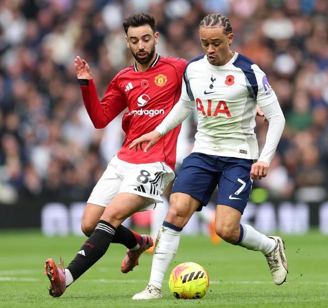 上賽季的熱刺堪稱曼聯的最大苦主,不僅在英超主客場雙殺紅魔,而且在英聯杯的賽場也淘汰了曼聯,賽季收官之戰又在英聯杯的決賽擊敗紅魔捧起了冠軍的獎杯,為了延續強勢發揮,弗蘭克此役在主場沒有絲毫保留,在4231的陣型中,讓維卡里奧鎮守龍門,斯彭斯、范德芬、羅梅羅和波羅構筑后防,薩爾和帕利尼亞搭檔雙后腰,里沙利松、西蒙斯和約翰遜坐鎮中場,單箭頭則是穆阿尼。